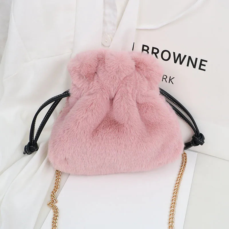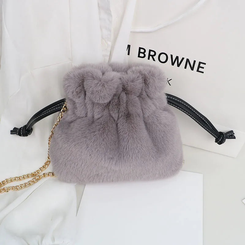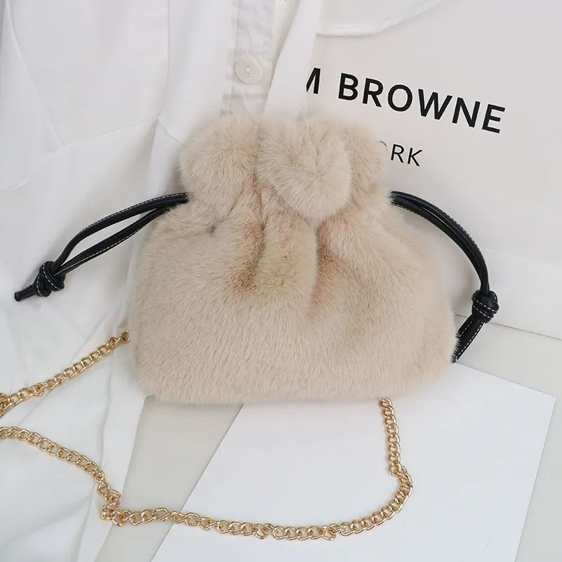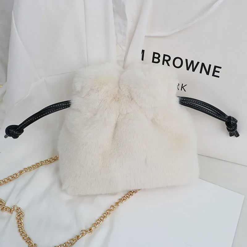 Plush Bucket Bag with Chain Strap