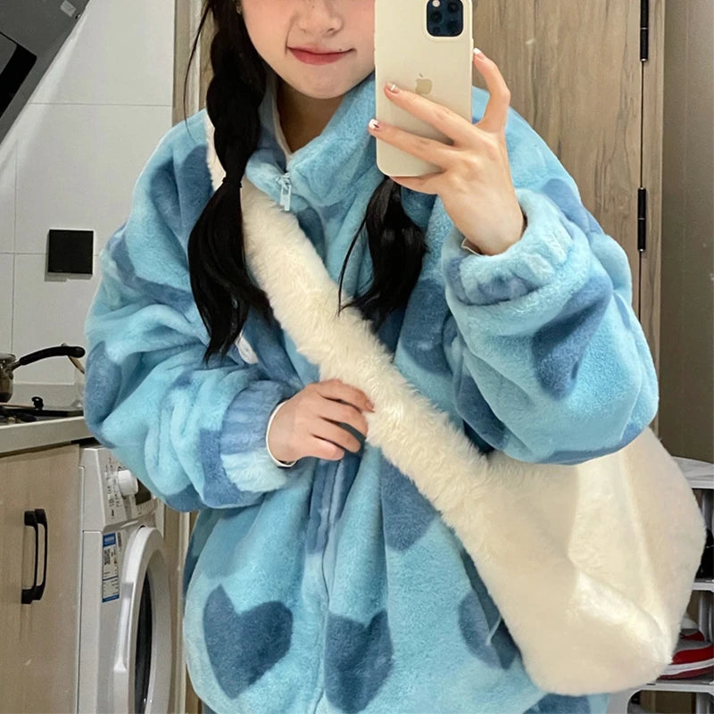 Stay cozy and stylish with this plush shoulder bag in a vibrant rose red color. Perfect for winter days and versatile enough for shopping or school.