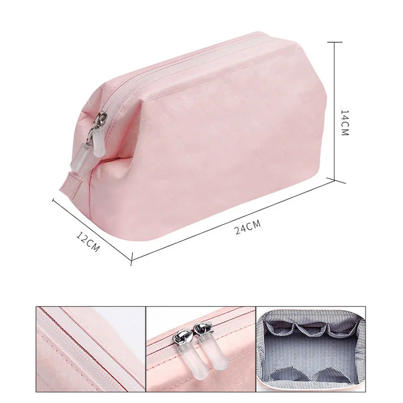 Convenient and stylish makeup bag perfect for travel with multiple compartments.