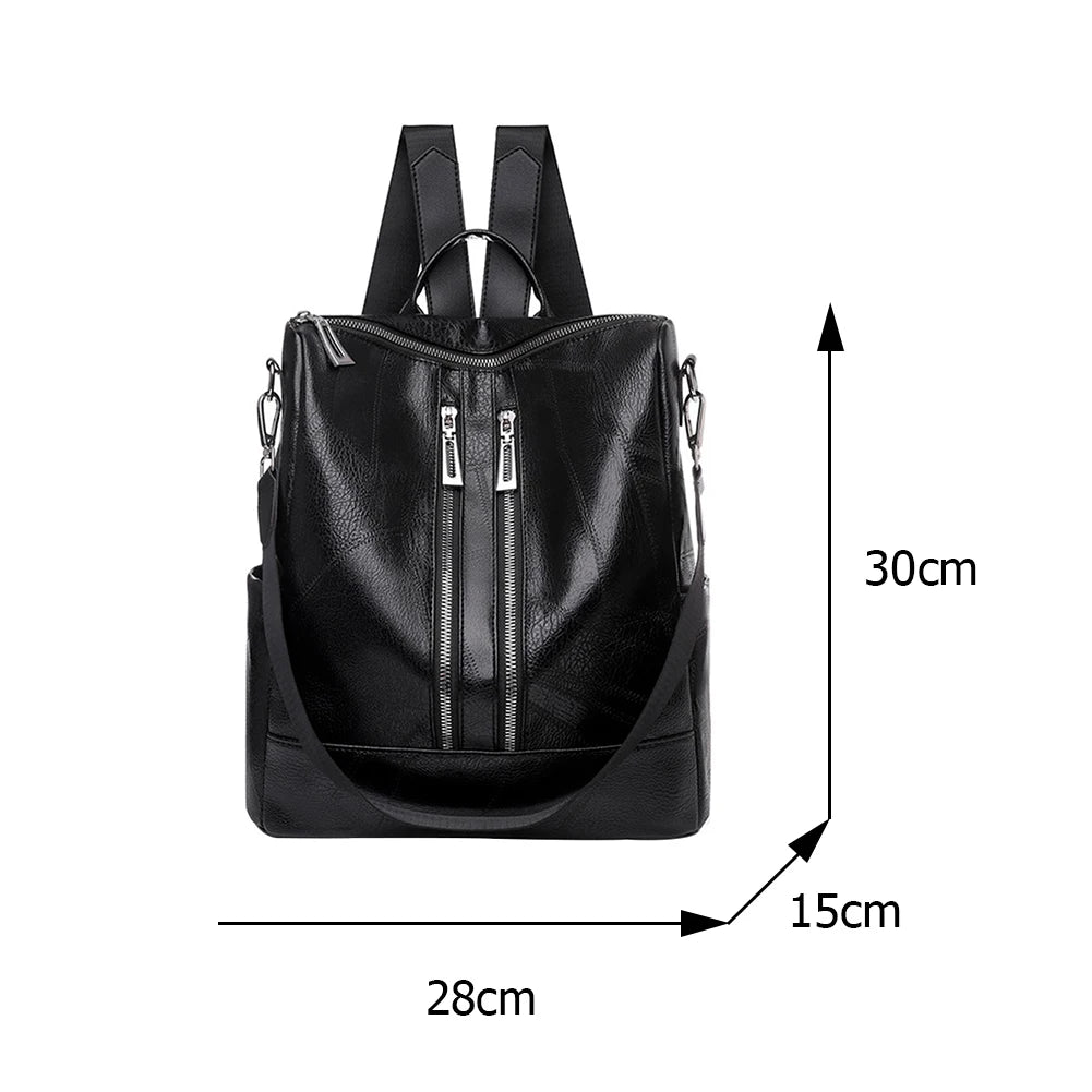 Portable Female Pure Zipper Backpacks Soft Anti-theft PU Leather Travel Knapsack