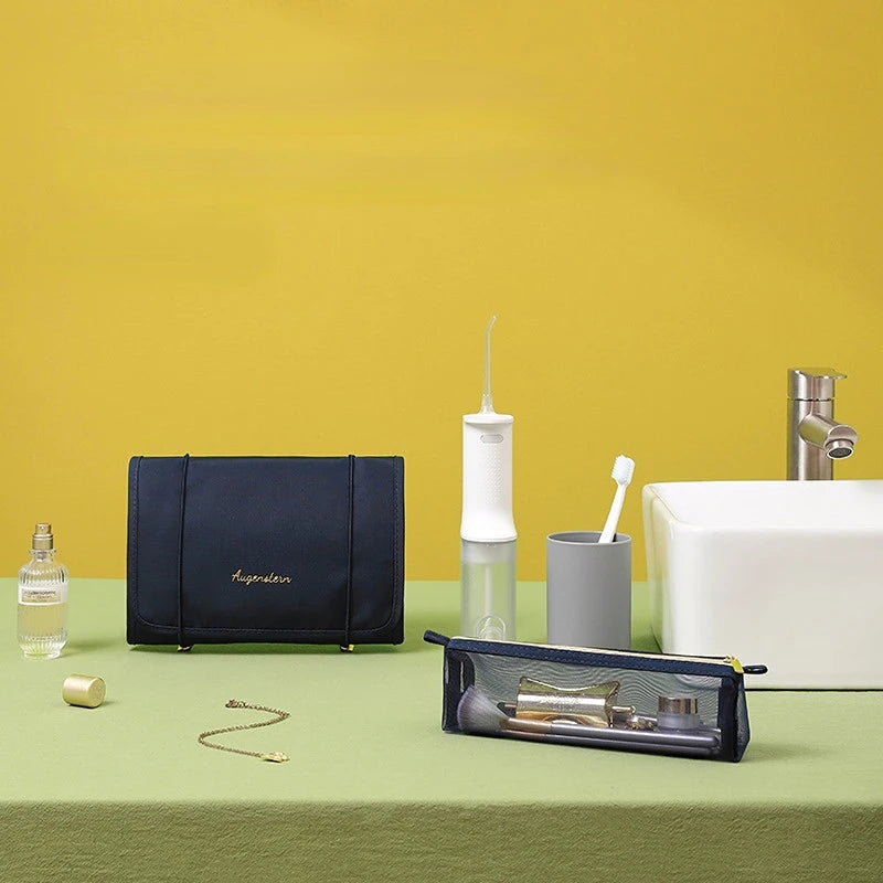 This detachable makeup bag is made of durable nylon material, featuring a large capacity and foldable design, perfect for travel or daily use.