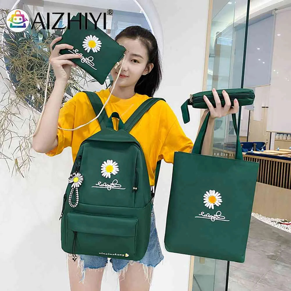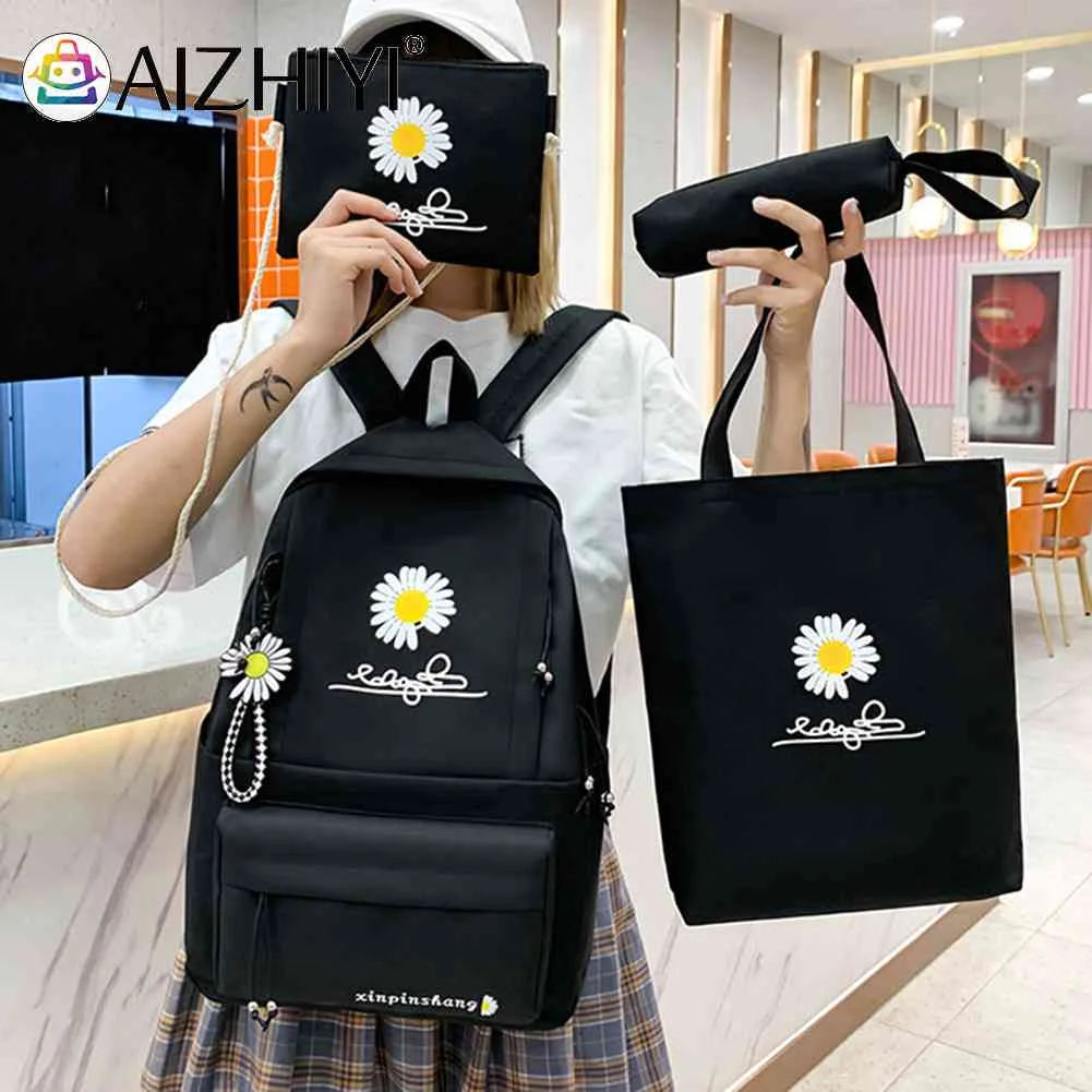 Preppy Style Daisy Print Backpack Set Canvas School Rucksack Girls Travel Bags