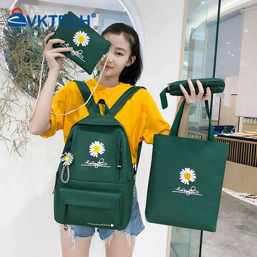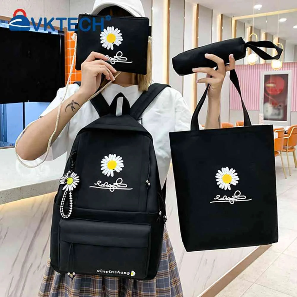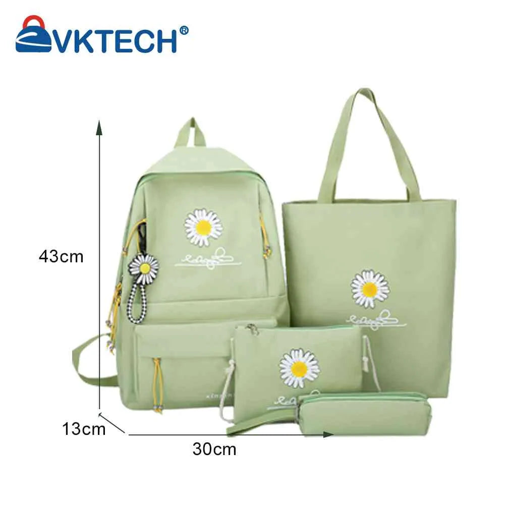 Preppy Style Daisy Print Backpacks Set Canvas School Rucksack