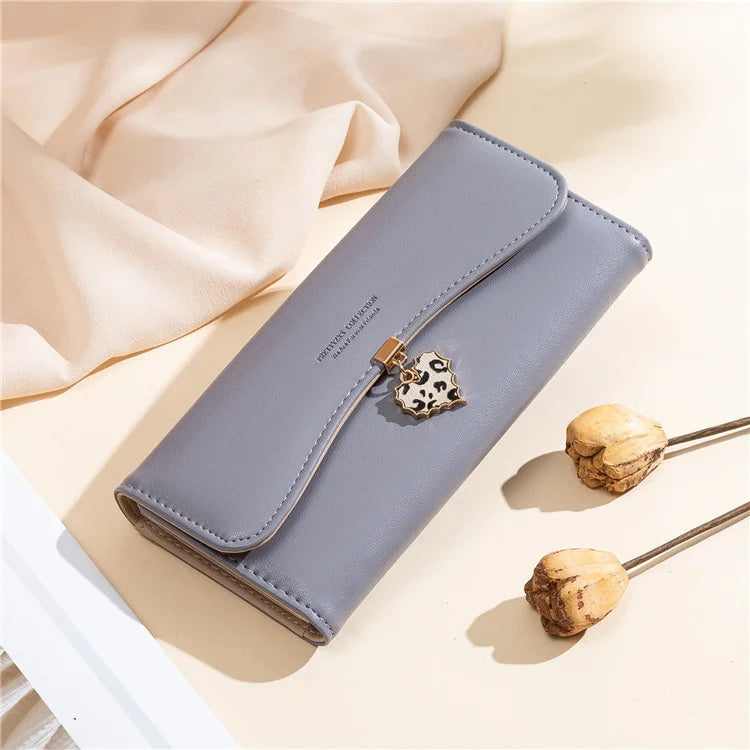 A pretty small fresh wallet with a three-fold design and love pendant, offering multiple functions. Perfect for carrying essentials in style.