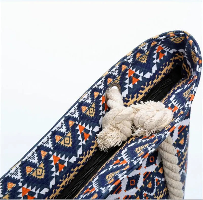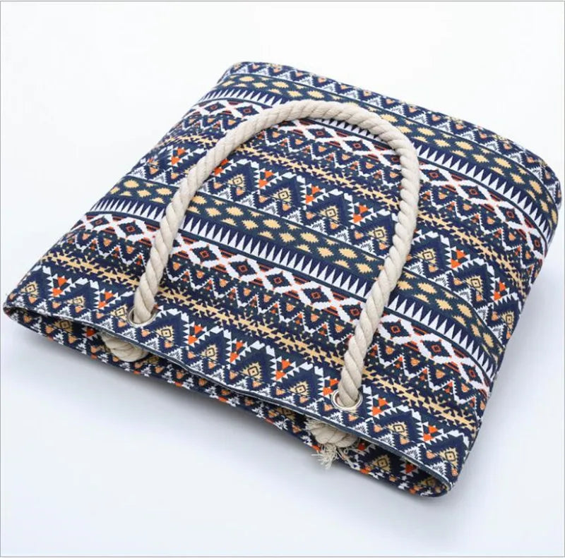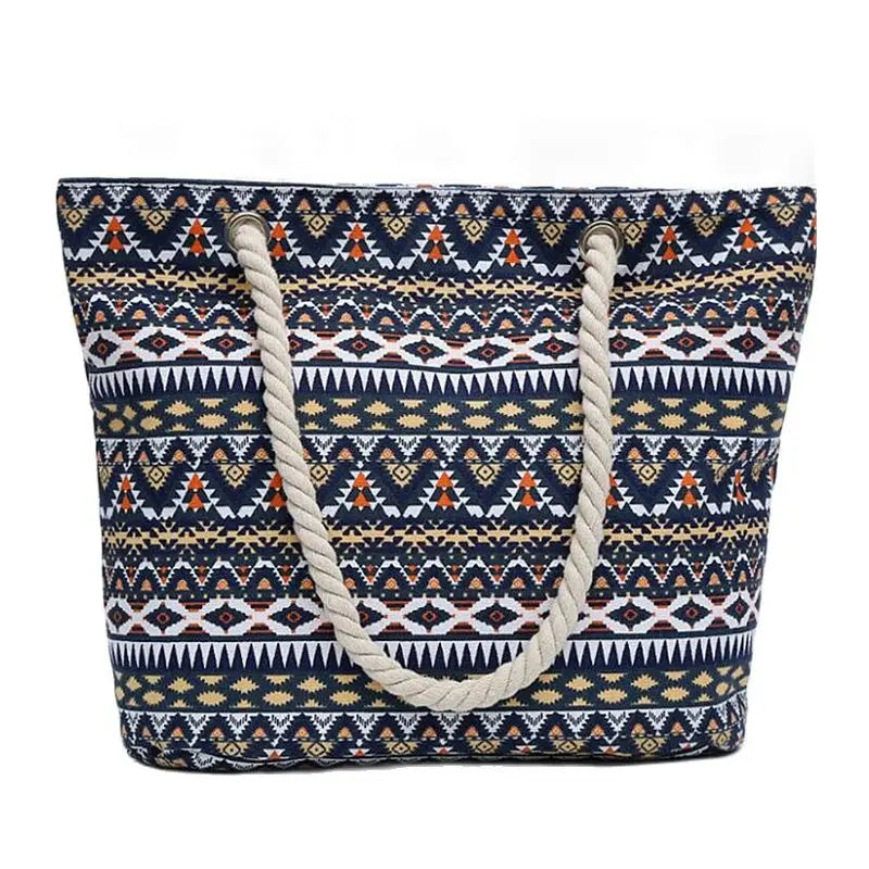 This stylish shoulder bag features a hot printed geometry design and is made of high-quality canvas. It has a large size, ideal for shopping or trips to the beach. The bag comes with a cotton strap for added comfort.