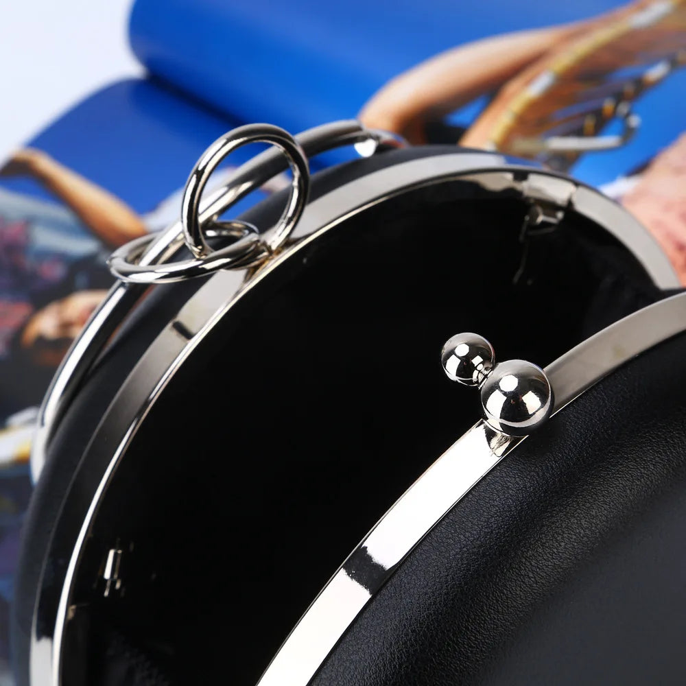 PU Circular Evening Bag Pink Silver Metal Ring Totes Bag