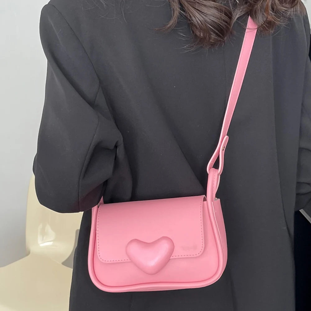 PU Leather Crossbody Bag Love Clasp Portable Soft for Weekend Vacation
