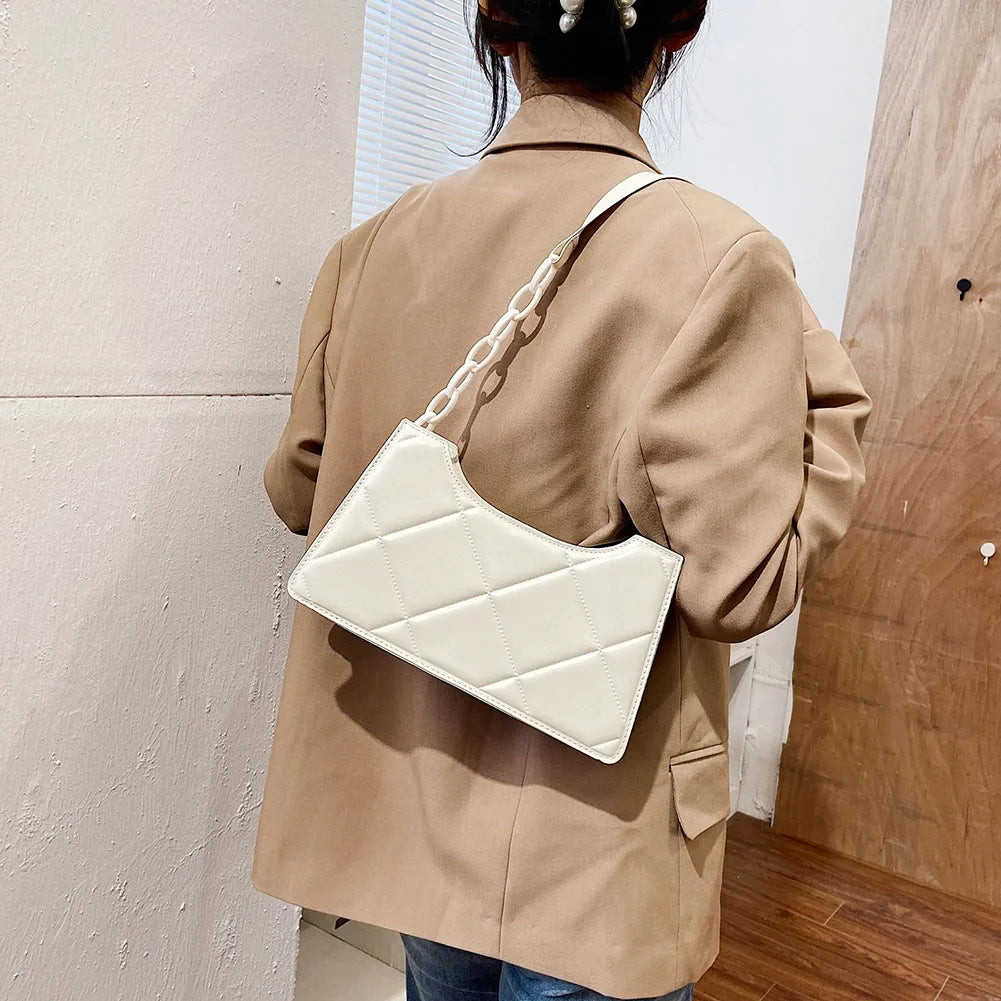 PU Leather Shoulder Bag Ladies Casual Zipper Solid Underarm Bags