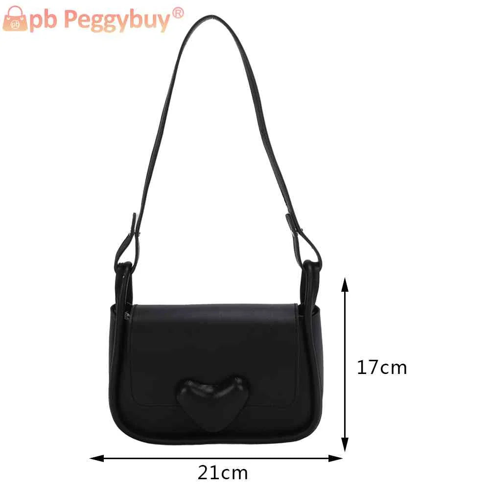 PU Leather Shoulder Bag Solid Flap Female Commute Bag Love Clasp Portable Soft
