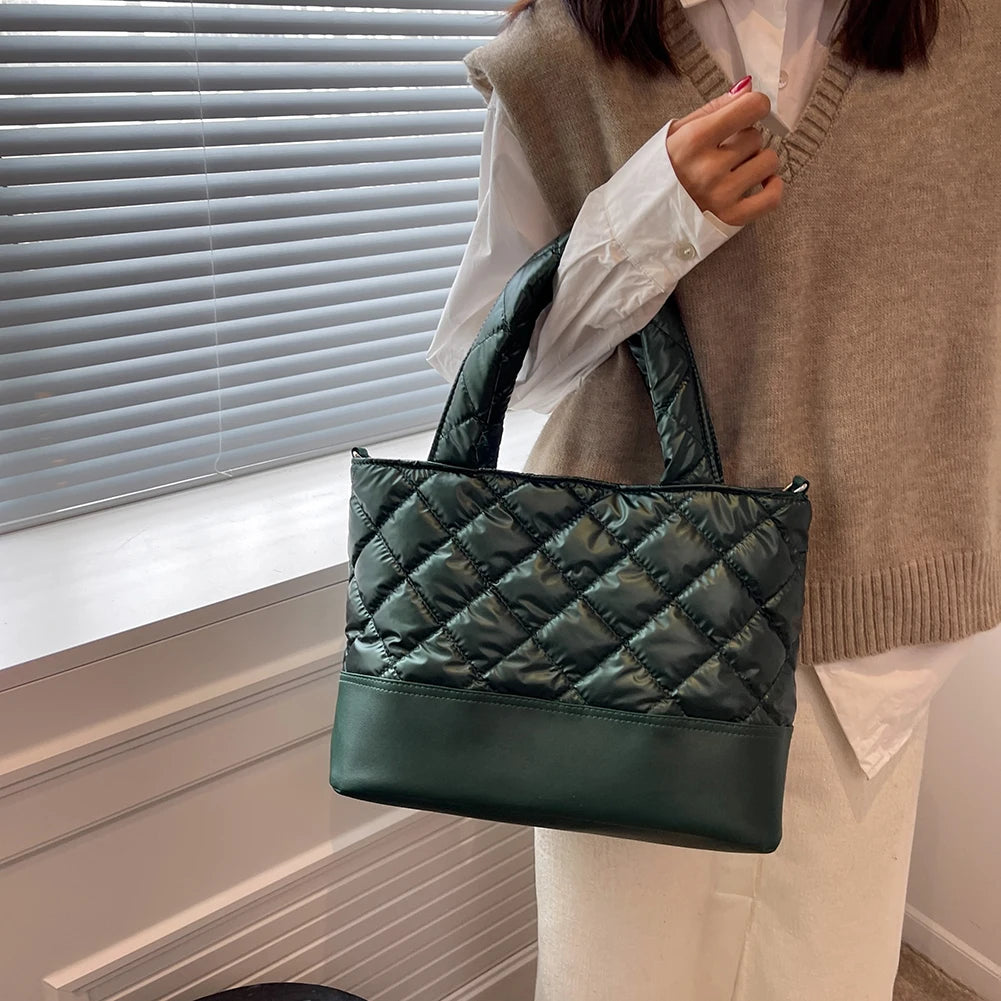 Stay stylish and organized with this quilted padded cotton shoulder crossbody bag. Perfect for autumn and winter, it offers ample storage space for all your essentials while traveling.