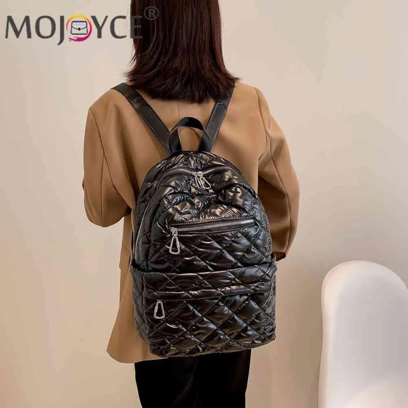 Description:Stay chic and trendy with this stylish backpack featuring quilted cotton padding and a rhombic lattice design. Great for everyday use or travel.Features: Quilted cotton-padded backpack for women Made of high-quality nylon with rhombic lattice pattern Comfortable to carry with padded shoulder straps Ideal for daily use, school, work, or...