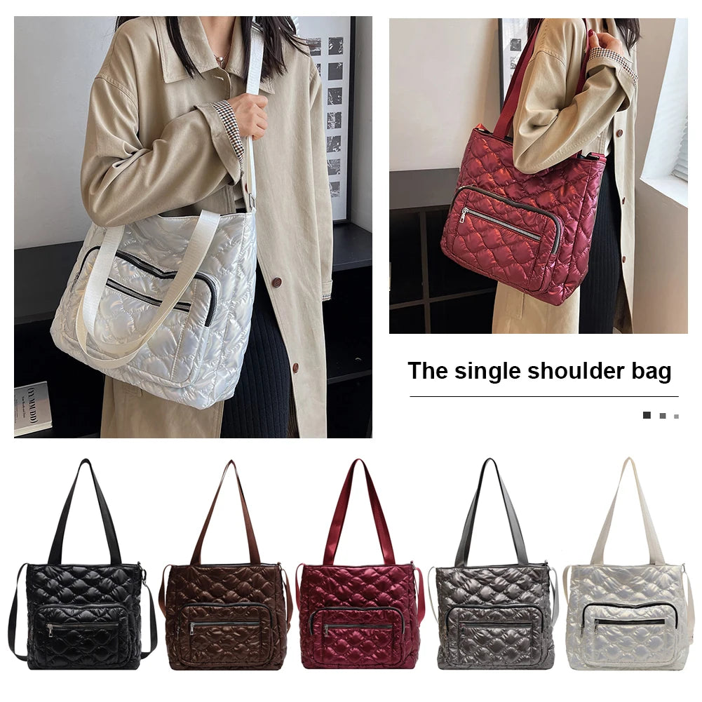 Stay stylish and organized with this quilted nylon crossbody bag. Perfect for shopping and travel, this waterproof bag is both practical and fashionable.