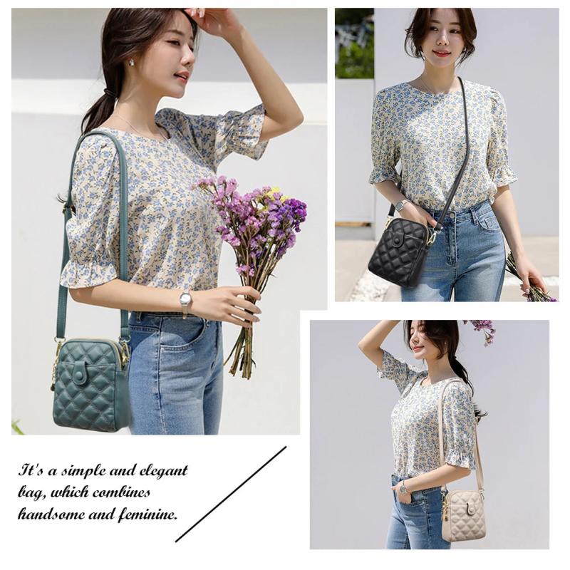 Quilted Leather Shoulder Bag Rhombus Casual Purse Phone Bag