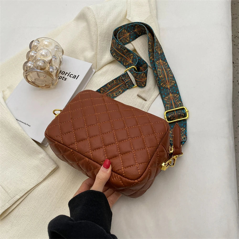 Stay stylish with this retro messenger bag featuring a quilted PU leather design and wide strap. Perfect for carrying your camera or other essentials, this bag is durable and fashionable.