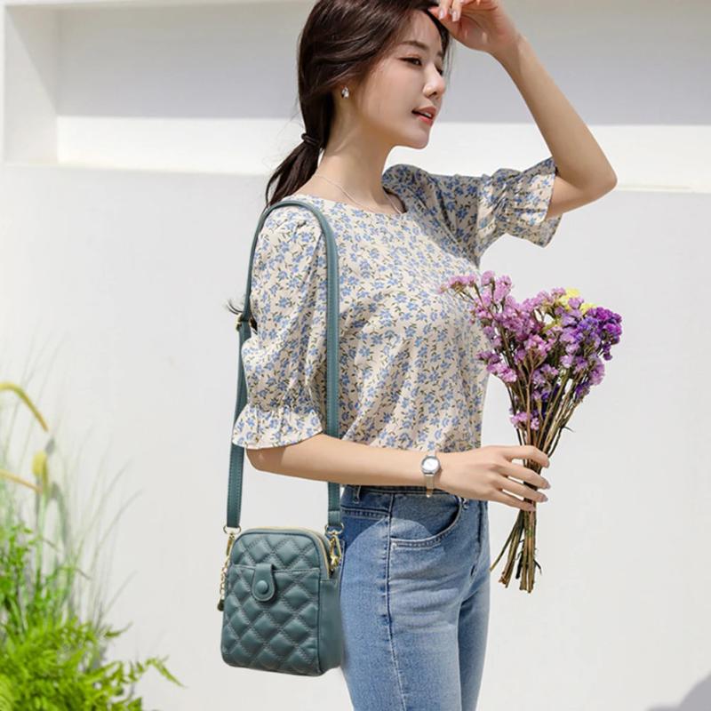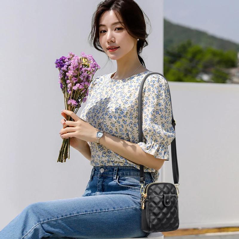 Quilted Rhombus Leather Messenger Handbag for Ladies - Phone Bags