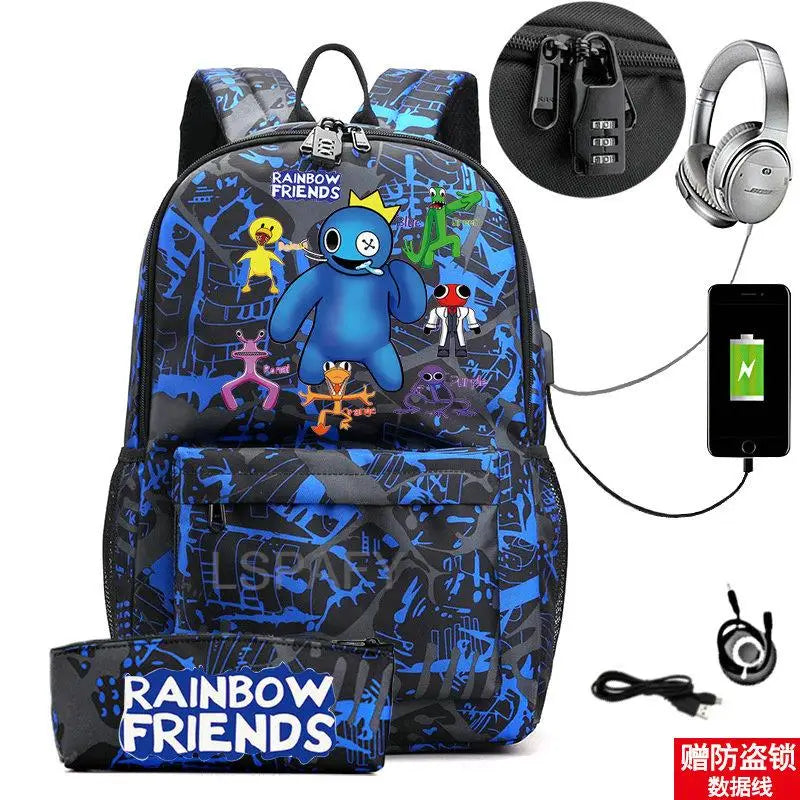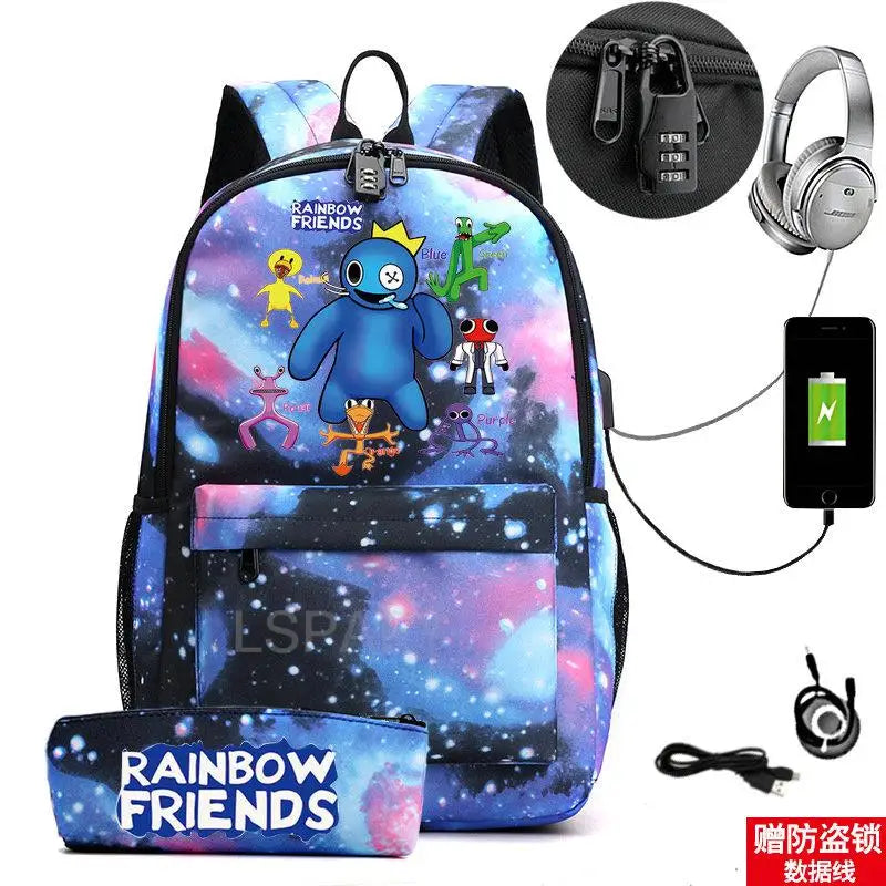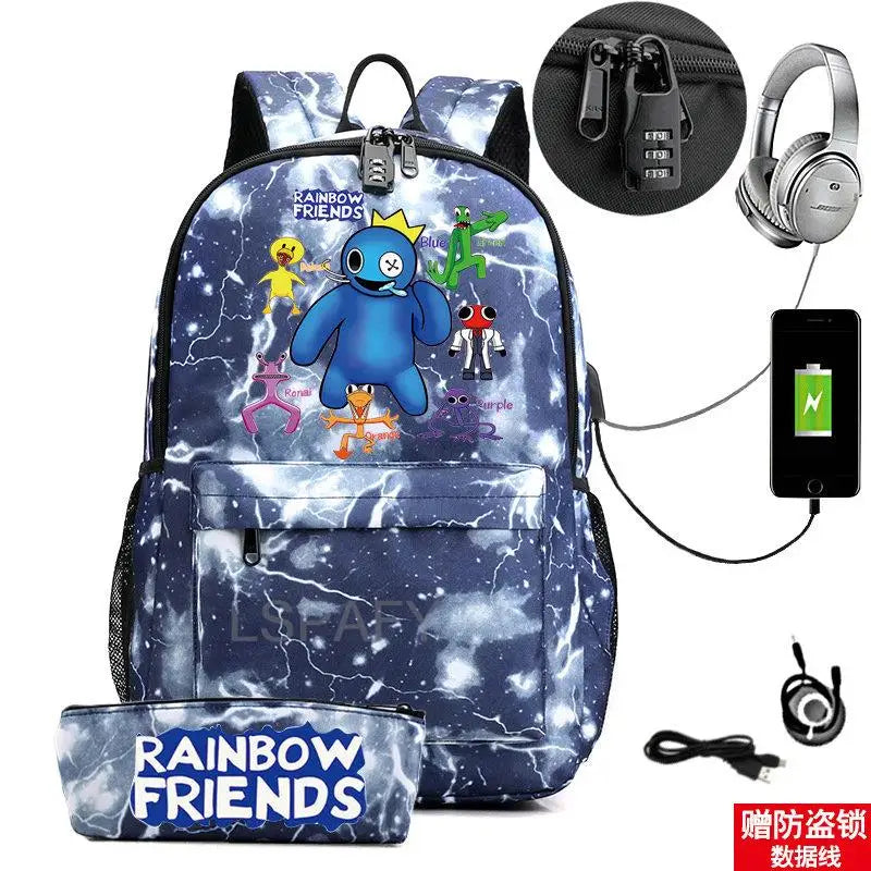 Stay stylish and organized with this rainbow backpack crafted from durable canvas. It features anti-theft design and a built-in USB charging port.
