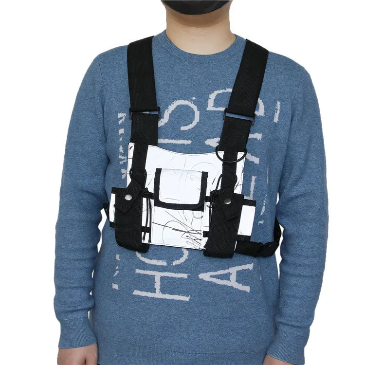 Stay stylish and practical with this hip hop streetwear functional tactical harness chest rig, designed to keep your essentials secure while adding a cool edge to your outfit.