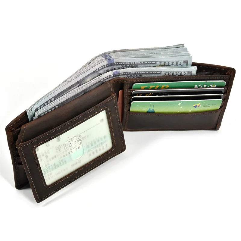 Retro Leather Wallet Crazy Horse Leather Short Wallet Multi-Card Slots
