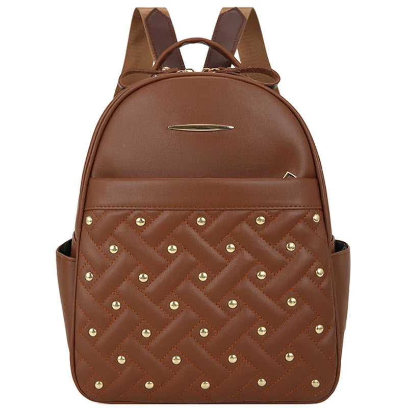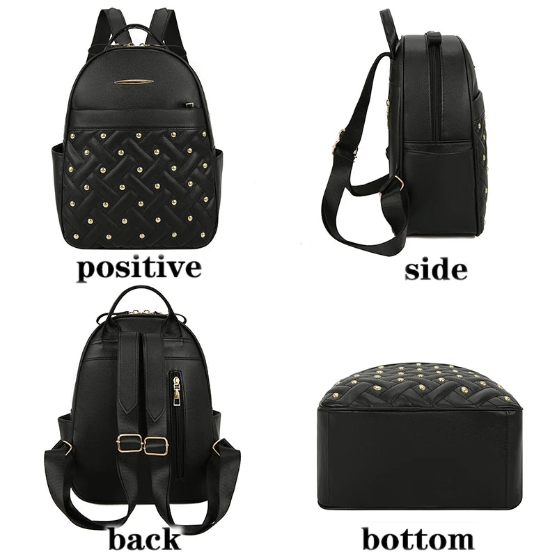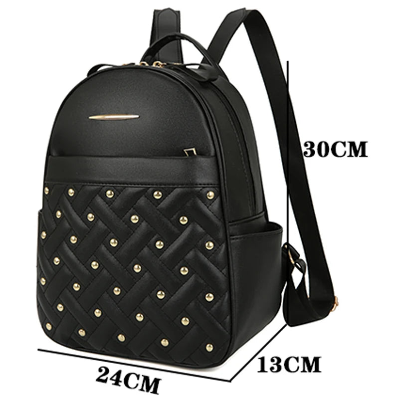 This multifunctional school bag is designed with high-quality leather and retro rivets. It features anti-theft properties and a large capacity for all your essentials.