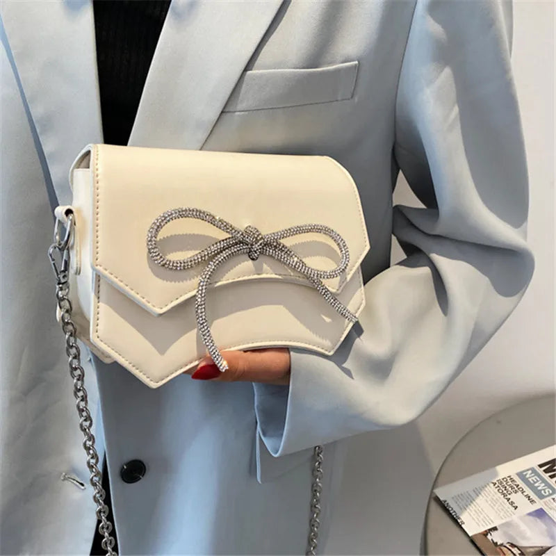 Rhinestone Bow Mini Messenger Bag Chain Shoulder Handbag