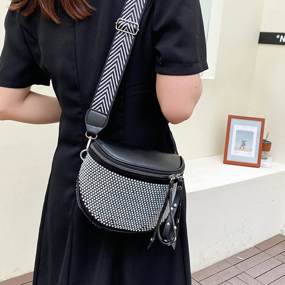 This stylish rhinestone crossbody bag is perfect for women who love a touch of glamour. It can be worn as a chest bag, waist bag, messenger bag, or hobo-bag, making it versatile and functional.
