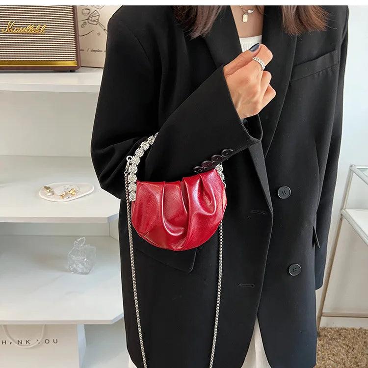 Description:Elegant and glamorous circular handle handbag adorned with shimmering rhinestones, perfect for parties, weddings, and other special occasions.Features: Circular handle design with dazzling rhinestones Ideal for evening dinner parties and weddings Compact size for convenience and style Can be used as a crossbody bag or a clutch Adds a touch...