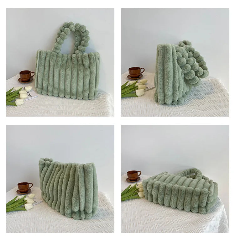 Ribbed The Tote Bags Winter Woolen Faux Fur Teddy Curl Plush Shoulder Bag