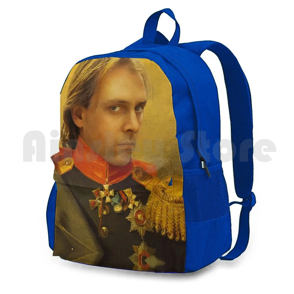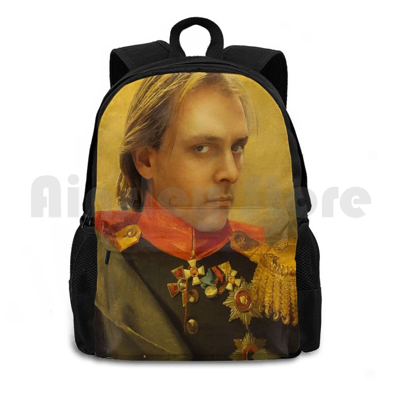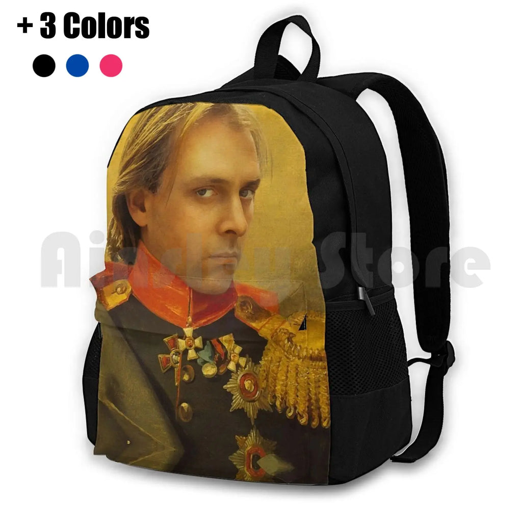 This Rik Mayall portrait backpack is perfect for outdoor activities like hiking, riding, climbing, and more.