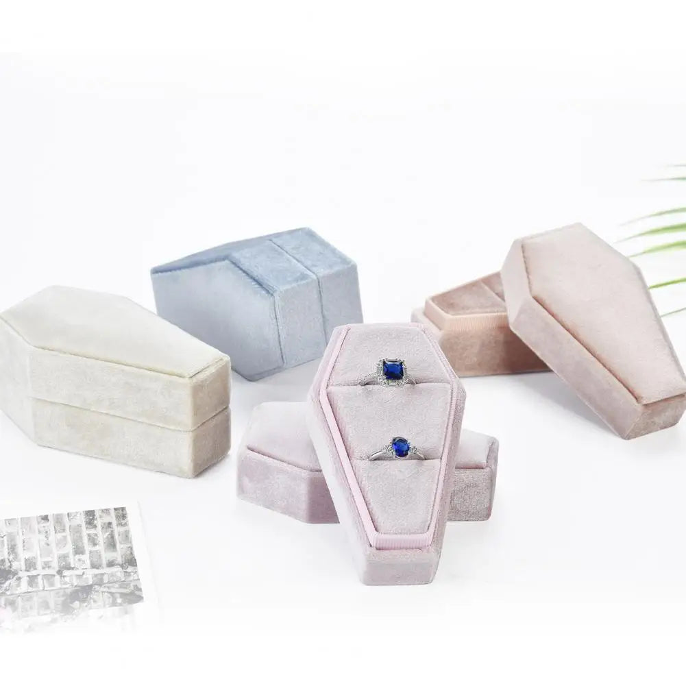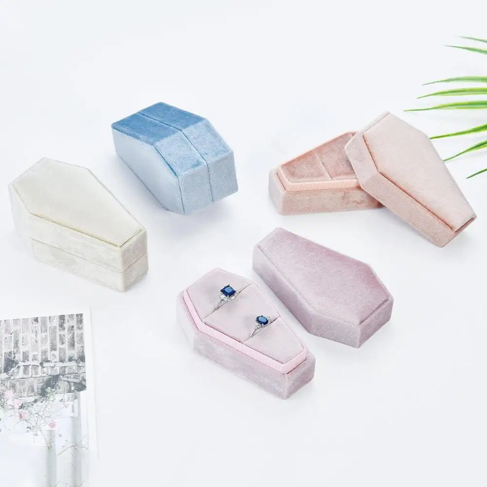 Keep your rings safe and organized with this casket-shaped ring box featuring a 2-position removable lid. Perfect for Halloween or everyday use. Anti-pilling material ensures long-lasting quality.
