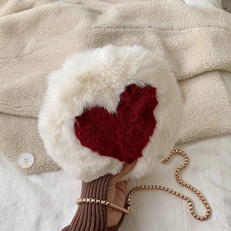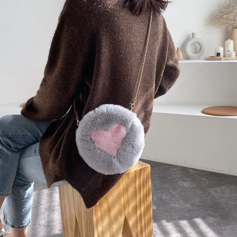 This round plush bag features a metal chain and a western love pattern design, perfect for casual outings. Can be worn as a one-shoulder or messenger bag.
