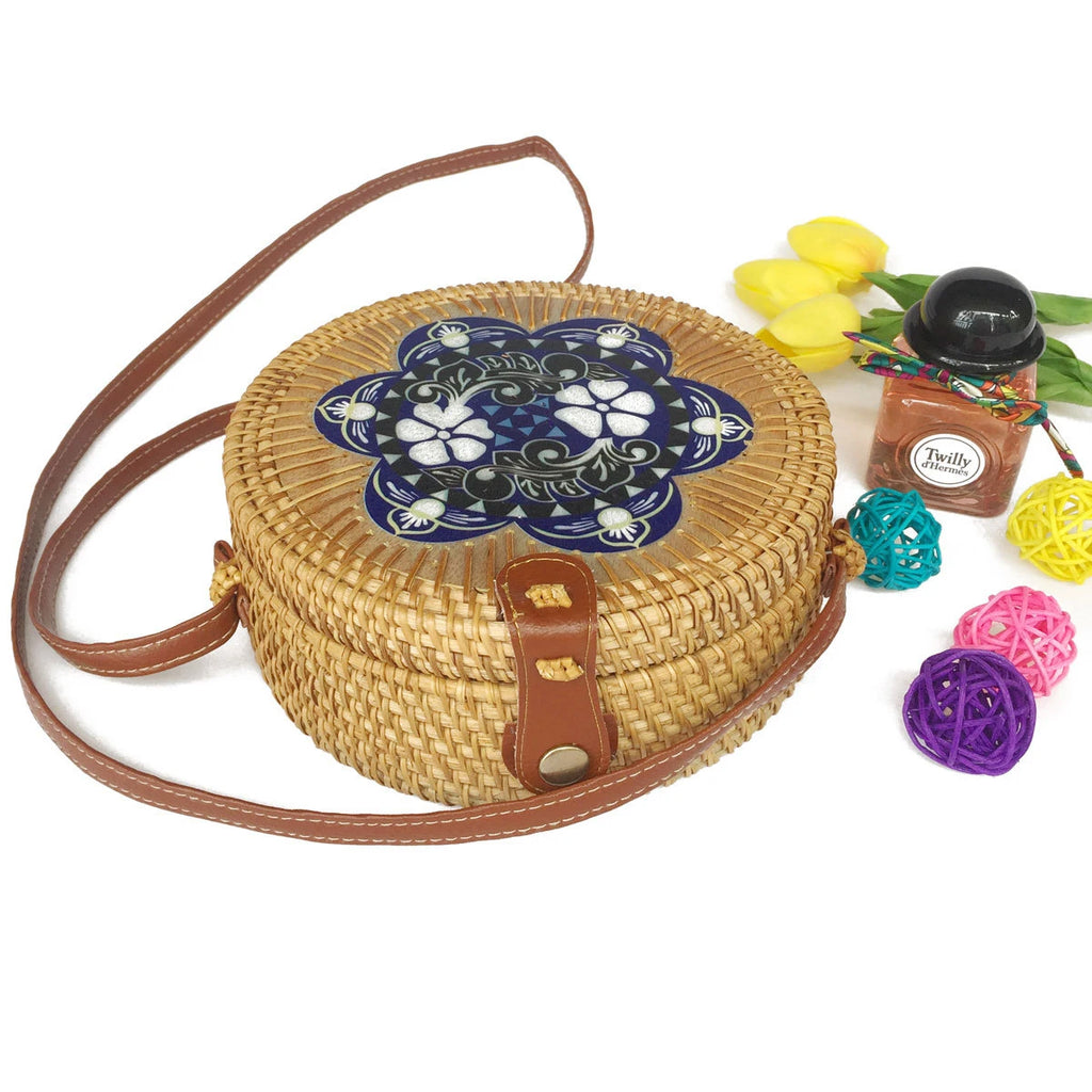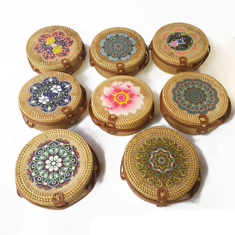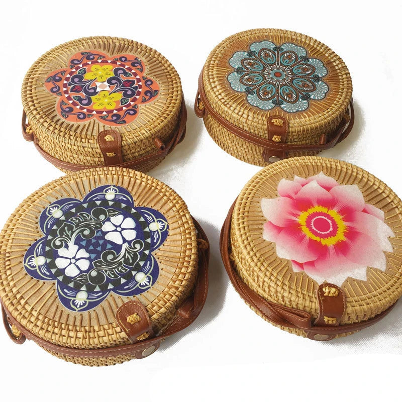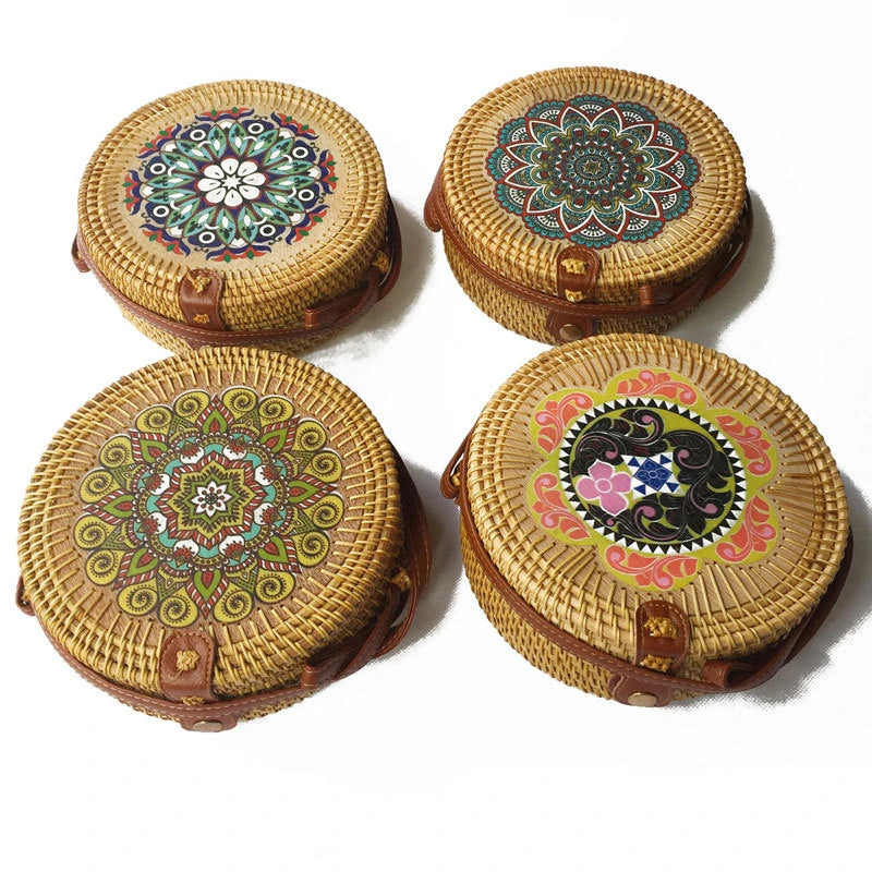 Round Straw Beach Bag Vintage Woven Rattan Bags