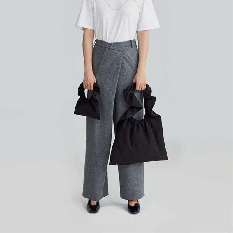 Elevate your style with this chic canvas hand bag featuring a ruffled one-shoulder design. Perfect for carrying essentials in a fashionable way.