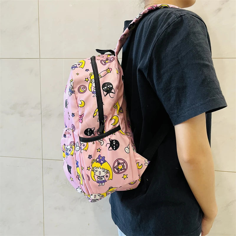 This Sailor Girl Moon backpack is perfect for casual students. It features a cartoon design and spacious compartments.