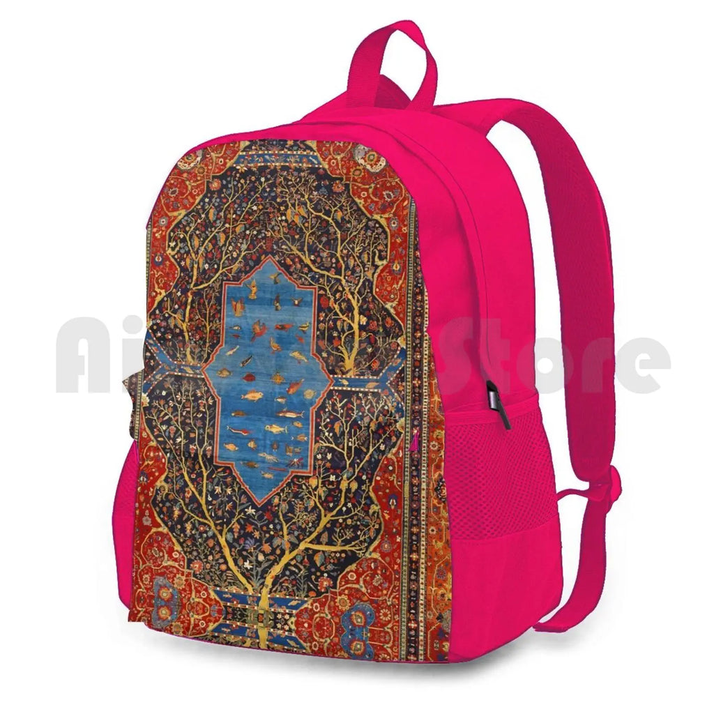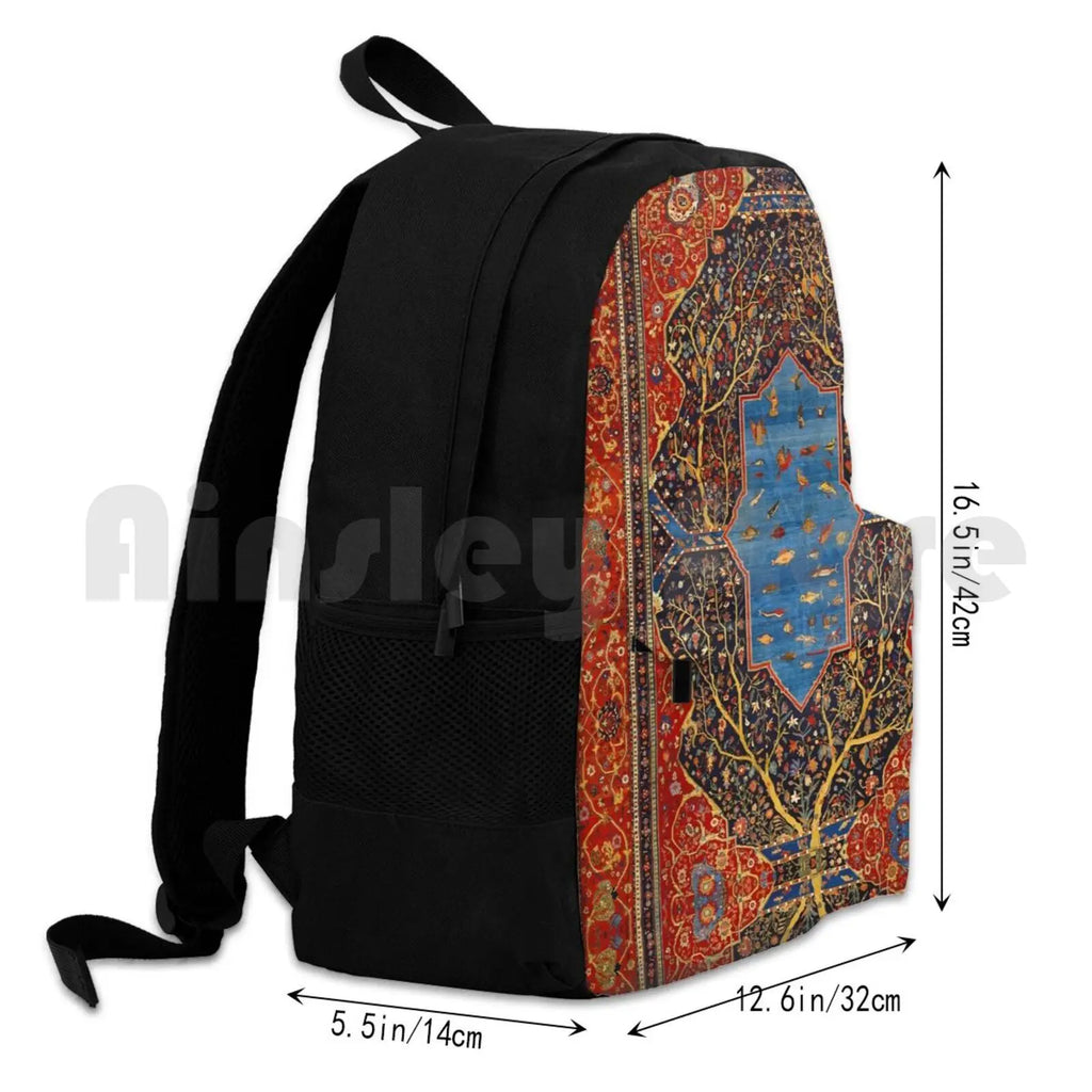 This stylish backpack features a unique Persian carpet print design inspired by traditional ethnic patterns. Ideal for outdoor activities like hiking, riding, climbing, and sports.
