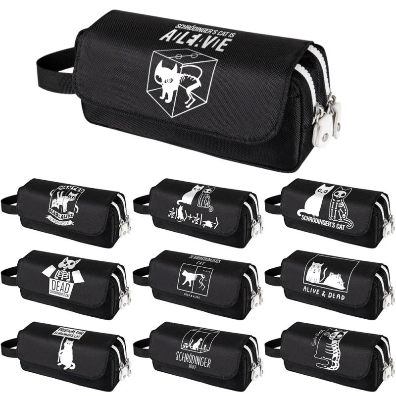 Schrodingers Cat Print Pencil Case Anime Cartoon Cosmetic Bag