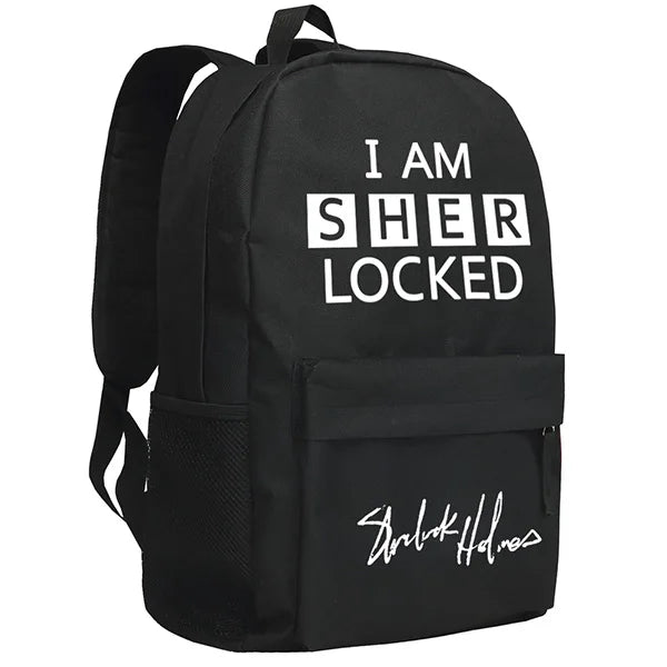 Sherlock Backpack for fans of the iconic detective with name print. Great gift for Sherlock Holmes cosplay or everyday use.