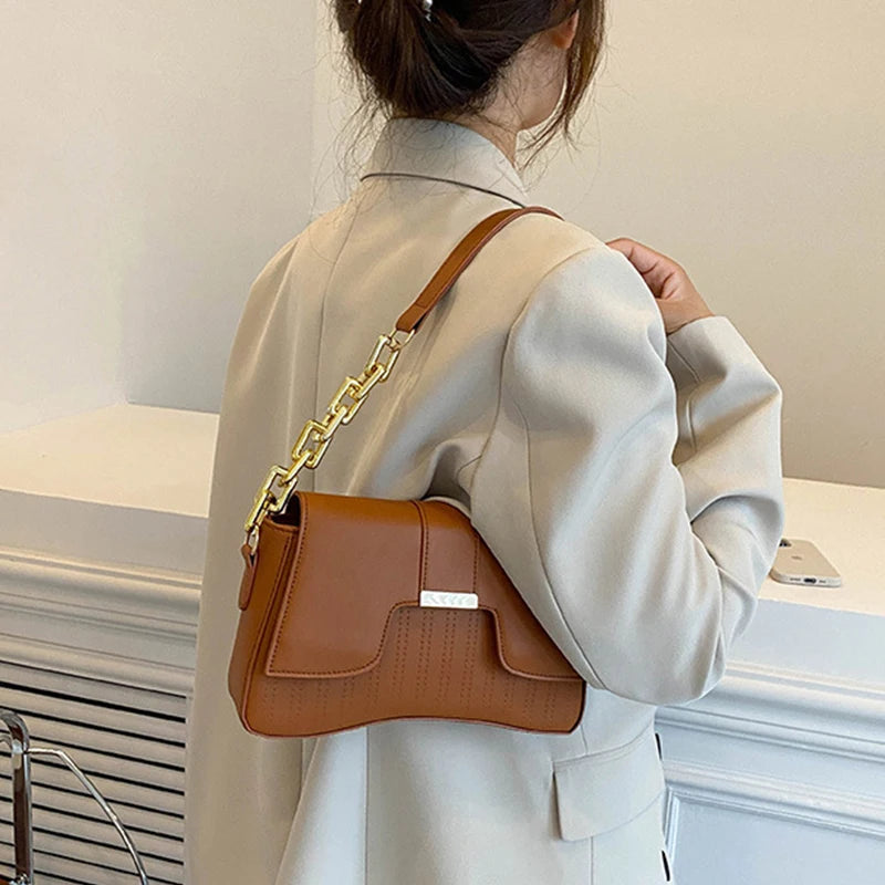Shoulder Bag Female PU Leather Armpit Bag Chains Small Underarm Bag