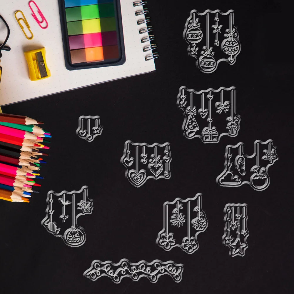 Create beautiful cards and scrapbooking designs with this silicone clear stamp set. Perfect for Christmas and birthday themes, these stamps are easy to use and durable.