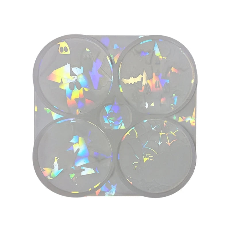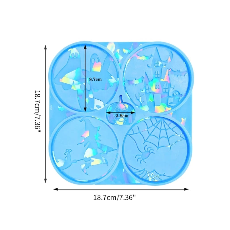 Create spooky-themed cup mats and trays with this Halloween silicone mold. Perfect for DIY home and office decor projects using epoxy resin. Make unique Halloween decorations.