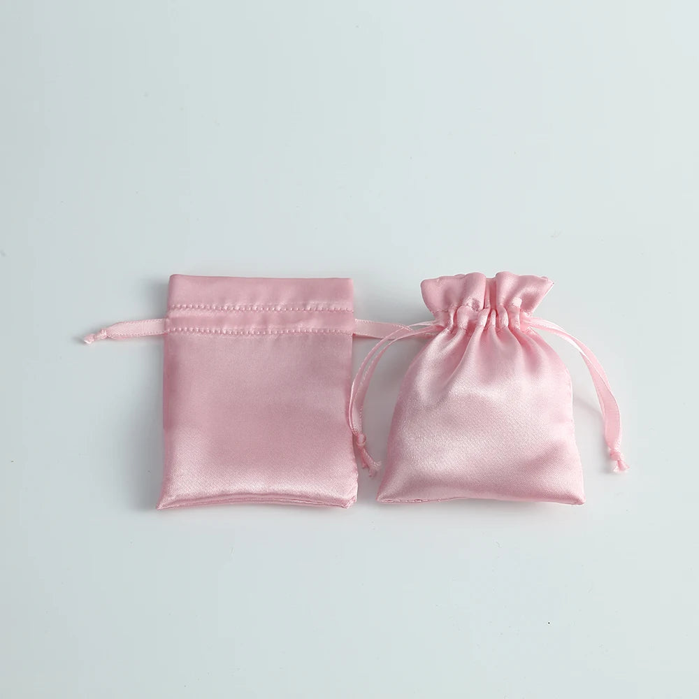 Keep your jewelry safe and stylish with these satin drawstring bags. Perfect for weddings, parties, and gifts, available in pink, blue, purple, red, and silver.