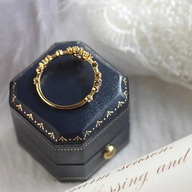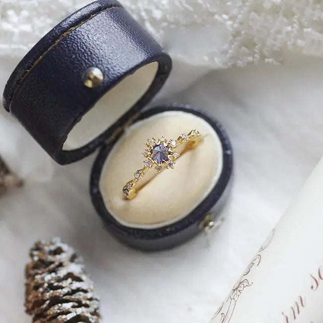 Silver Ring with Diamond-Encased Chalcedony Opening, Retro Charm Ladies Jewelry