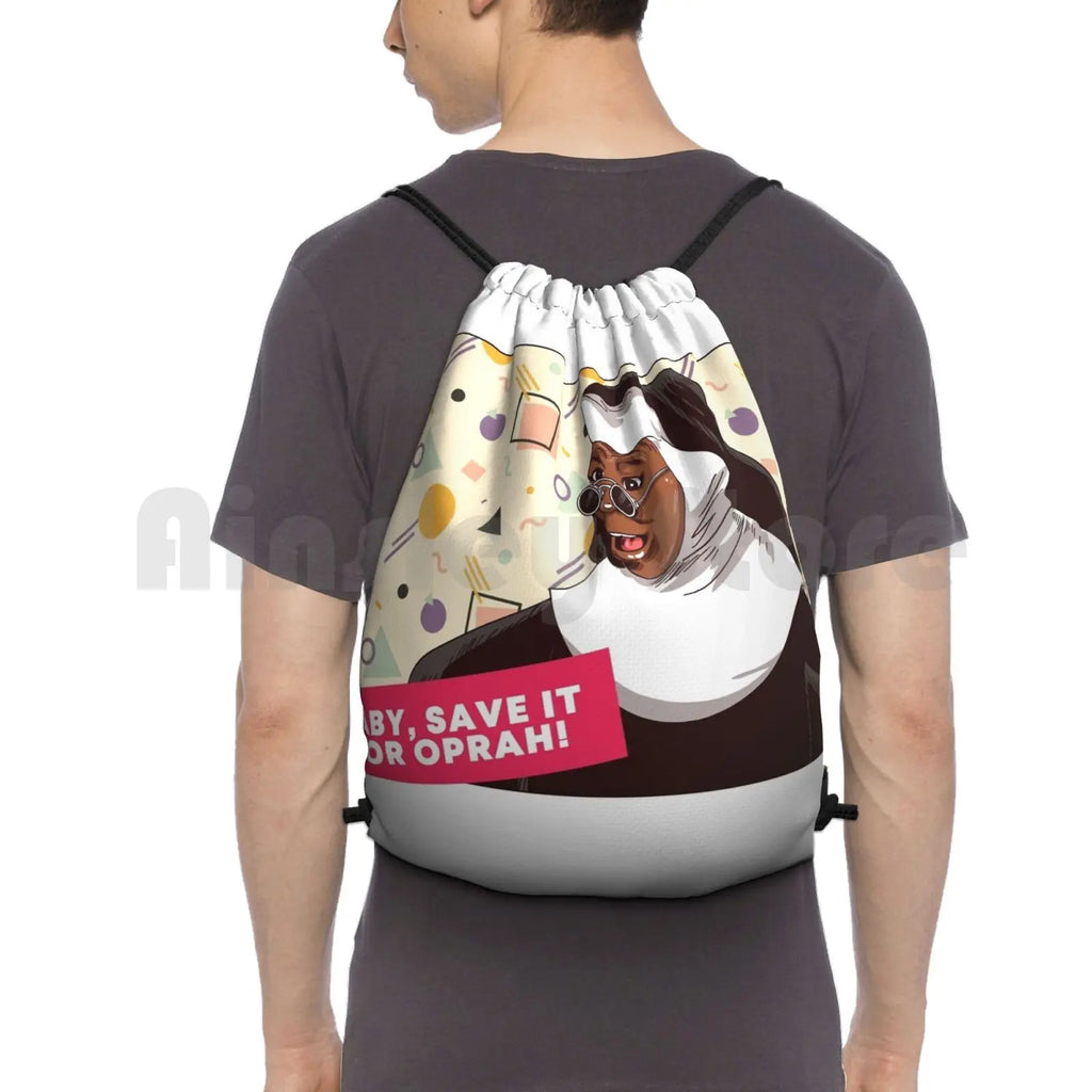 Get back in the habit with this Sister Act drawstring bag featuring Whoopi Goldberg. Perfect for the gym or everyday use, this waterproof bag is a must-have for fans of the 1990s film.