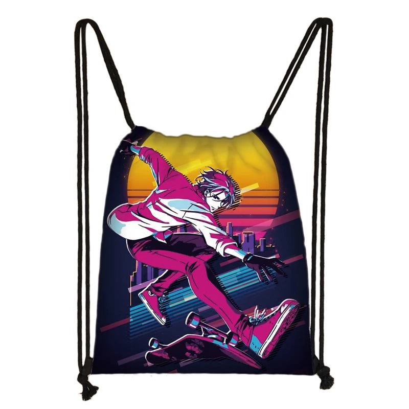 This drawstring bag is inspired by the Japanese Anime SK8 The Infinity. It's perfect for teenagers to use as a backpack or student storage bag. It's also great for children to use as a shopping bag.