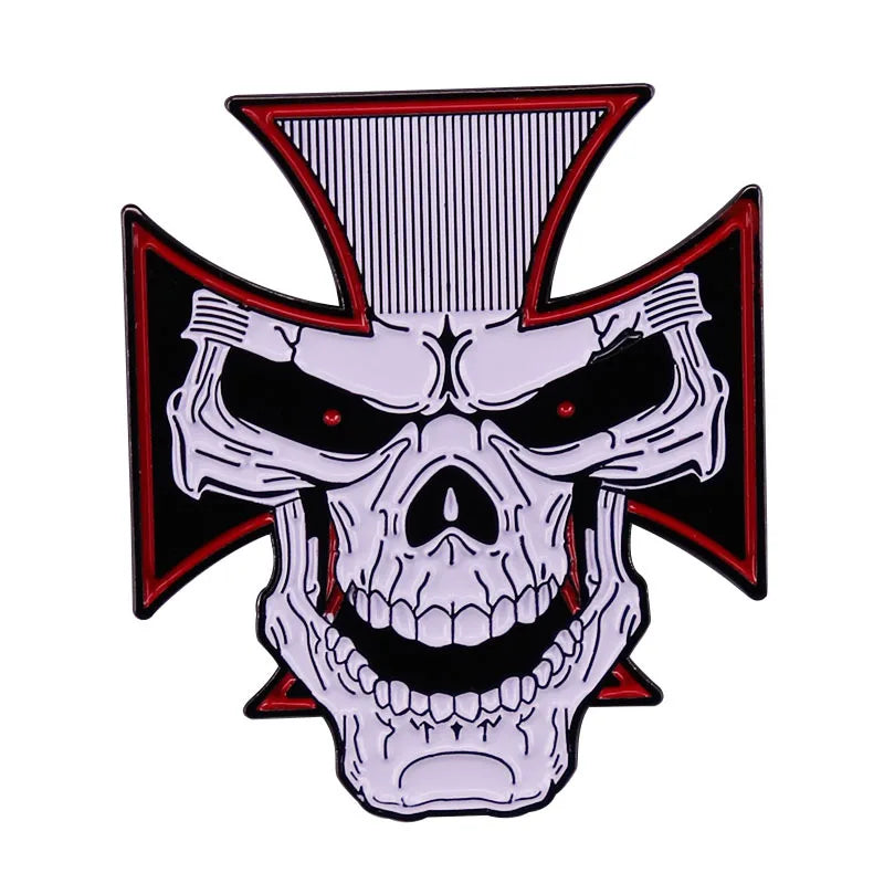 Add a touch of punk and gothic style with this enamel pin featuring a skeleton design. Perfect for Halloween or everyday wear.