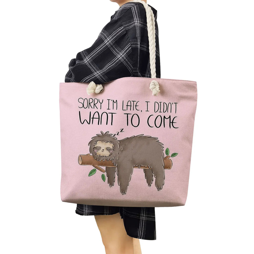 Sloth Print Rope Tote Bag High Capacity Office Shoulder Handbag
