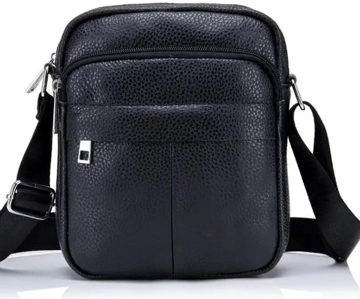 This compact and stylish leather shoulder bag is perfect for the modern man on the go. It features a small flap design and is made of high-quality leather.