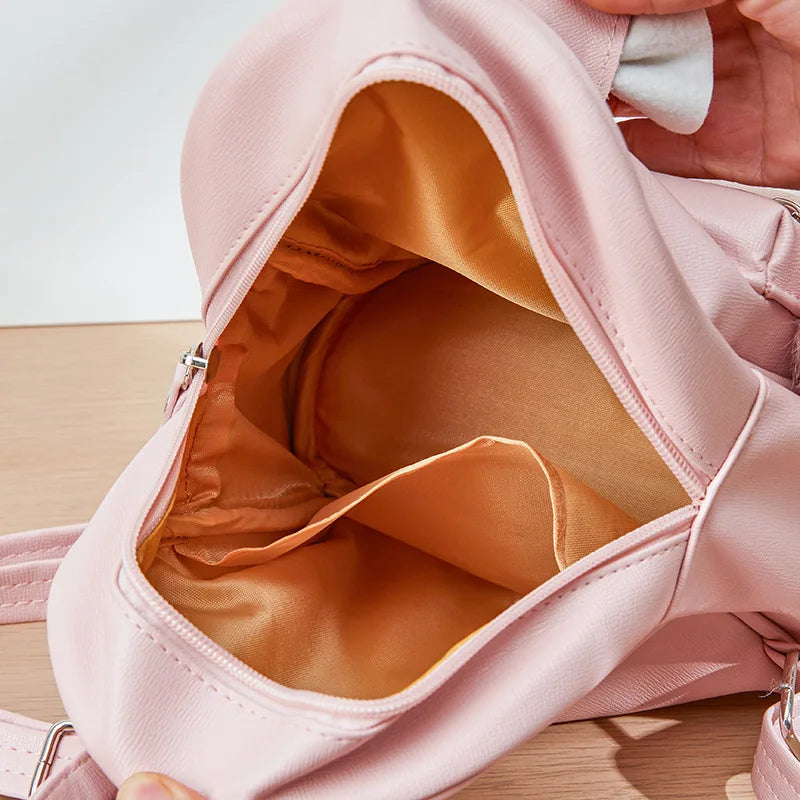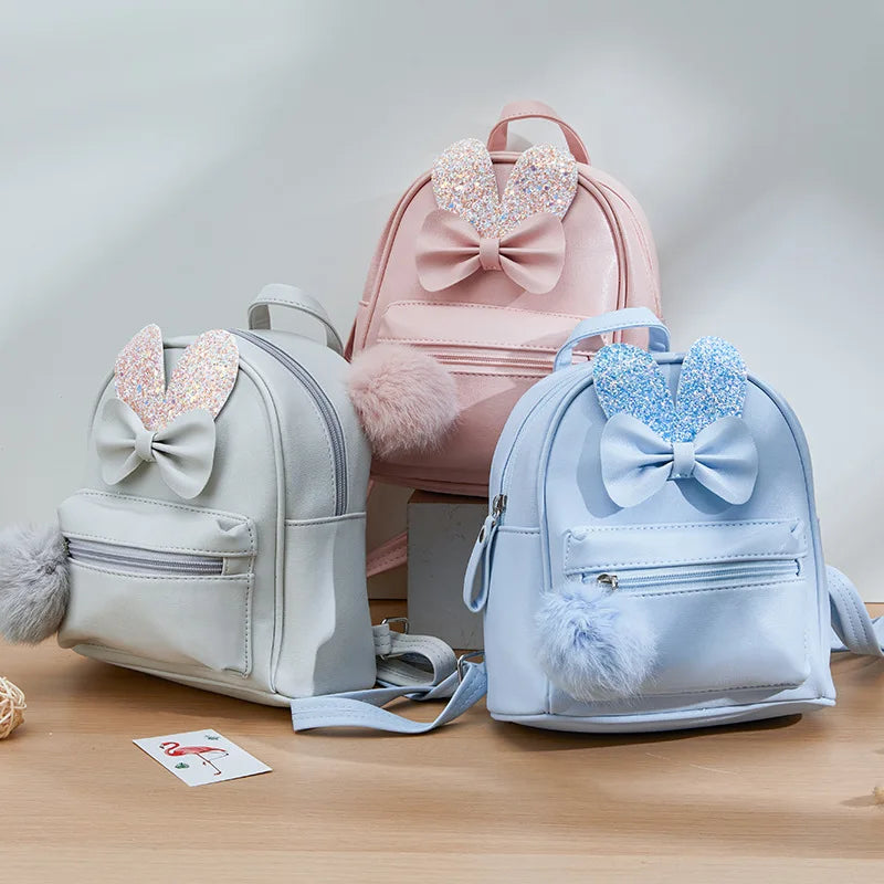 This adorable children's backpack is perfect for school or travel. It features a cute bow design and is made of durable material.