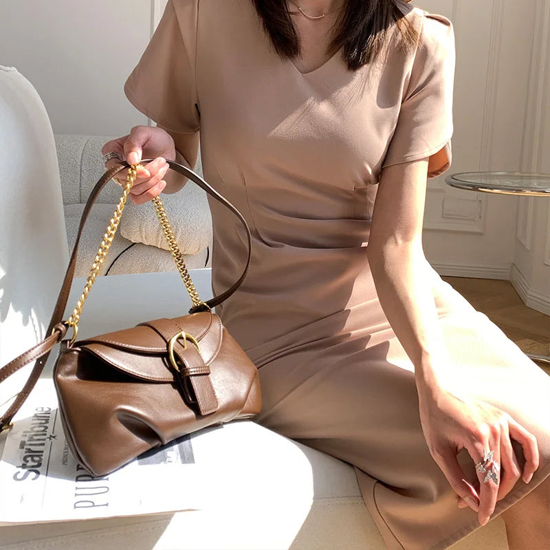 Soft Leather Cloud Bag - Spring Niche Fold Chain One-Shoulder