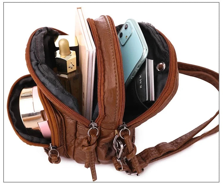 Soft Leather Shoulder Bag Multi-layer Large Capacity Phone Bag