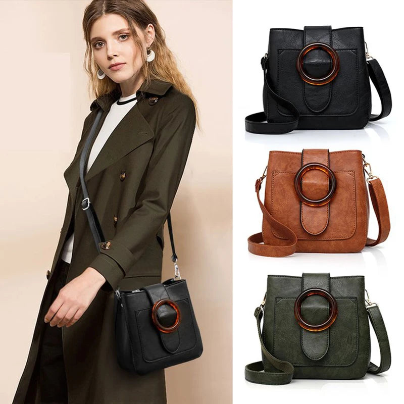 This retro shoulder bag is made of high-quality soft PU leather, featuring a circle hasp and shell design. Perfect for everyday use or a night out.